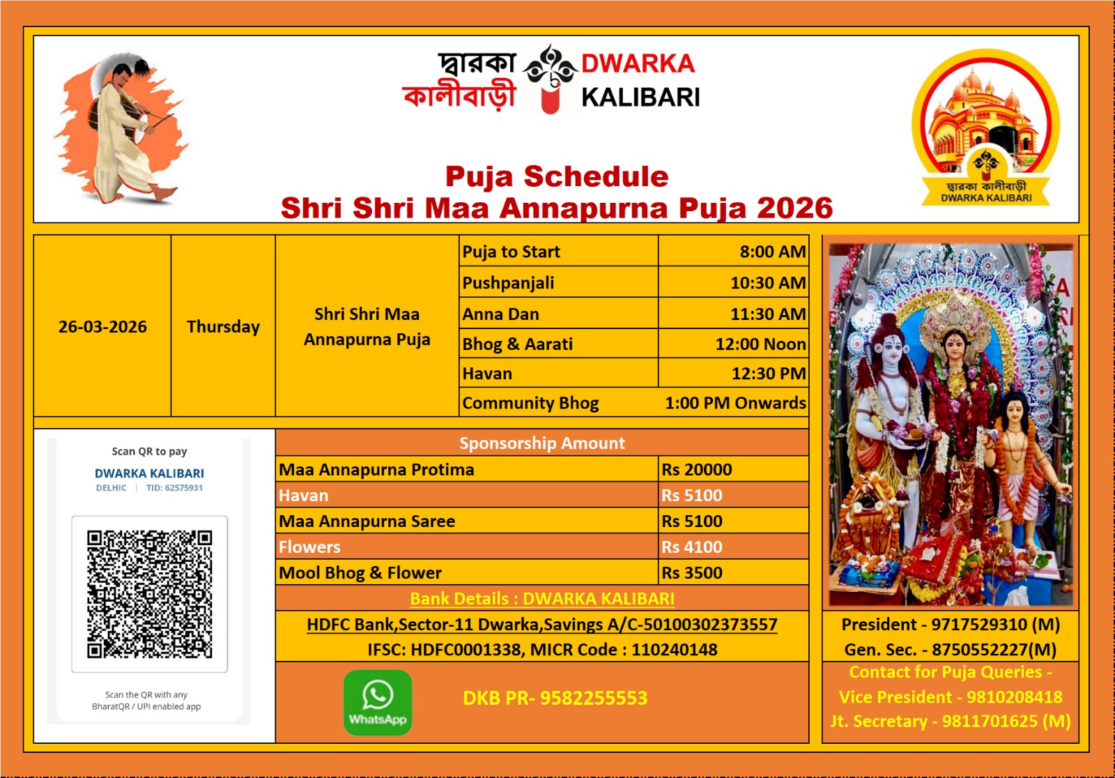 Dwarka Kalibari Shri Shri Maa Annapurna Puja On 26 March 2026 at Puja Start 8.am