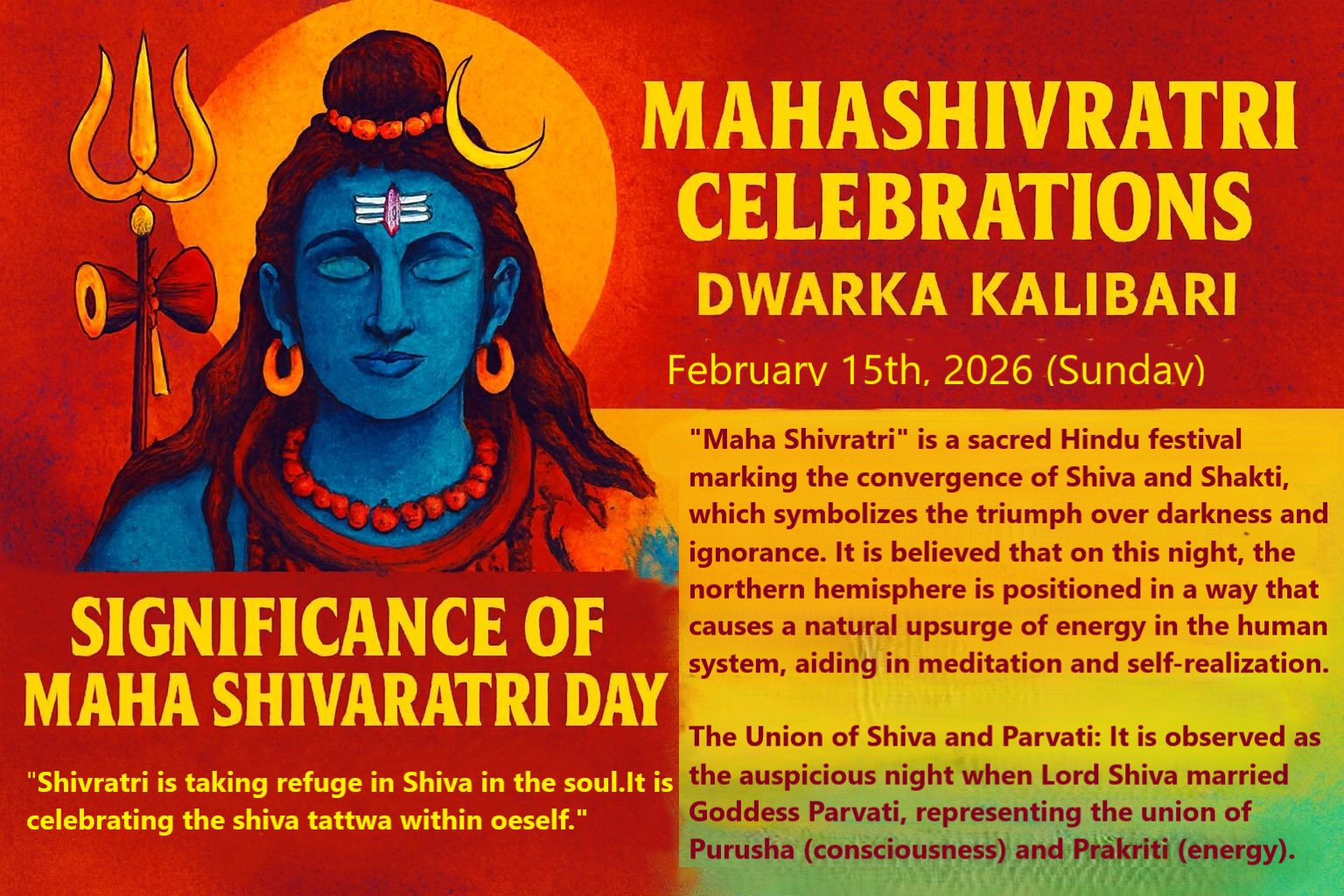 Dwarka Kalibari Shri Shri Maha Shivratri Puja on 15th Feb 2026 Sunday